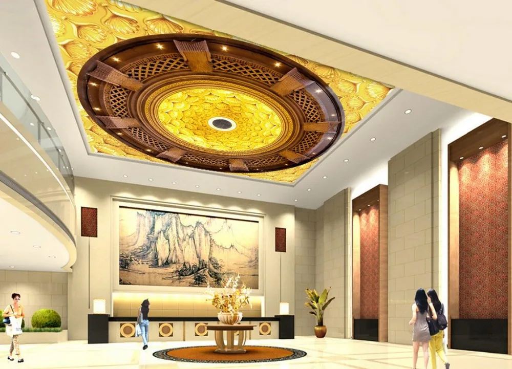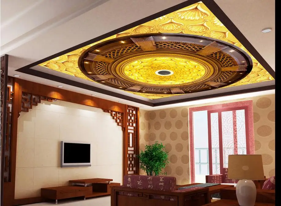 wallpaper 3d ceiling Golden flower ceiling murals 3d ceiling murals wallpaper 3d customized wallpap